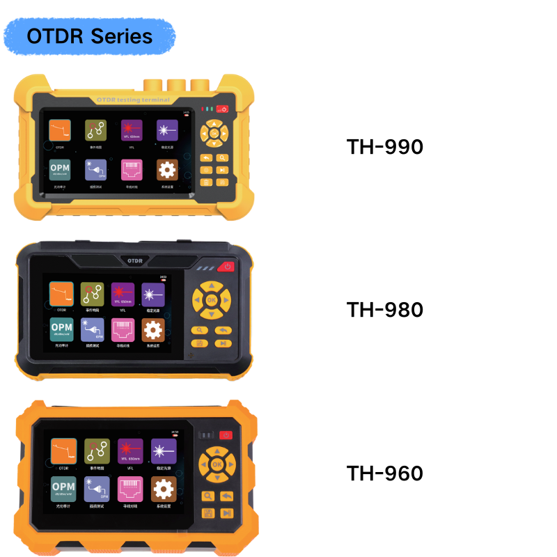 This is the OTDR series, comprising models such as the TH-990, TH-980, TH-960, TH-690, and TH-600, which are commonly used testing devices in the field of optical communications.
